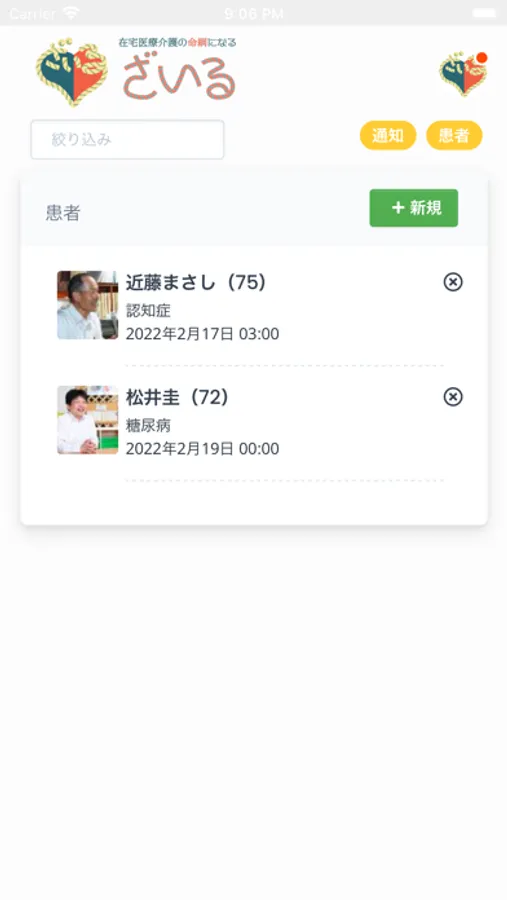 患者情報へは実際に医療・介護に関わるスタッフしかアクセス出来ないよう、完全招待制としています。自身が担当患者(利用者)画面を作成するか、同じ患者(利用者)を担当する他ユーザーから招待を受けることで、患者(利用者)情報にアクセスすることが初めて可能になります。
