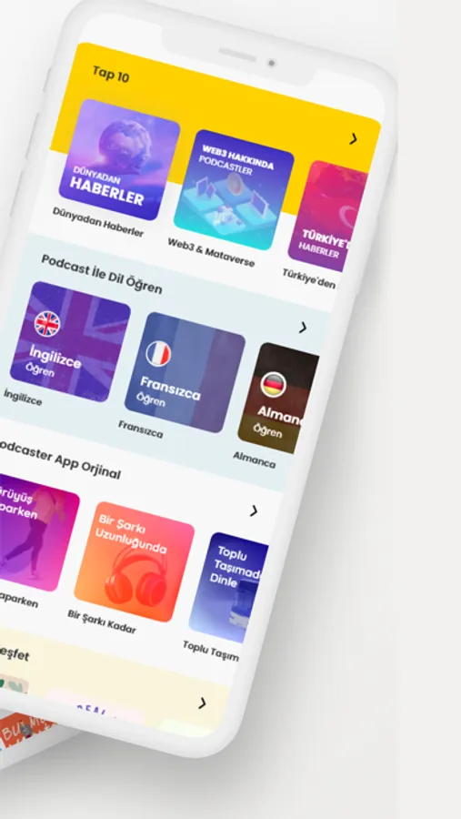 If you want to learn a new language, PodcasterApp is with you! According to research, consuming audio content in which the language is spoken contributes 70% to language learning. We have arranged many podcast selections for you in 12 different languages.