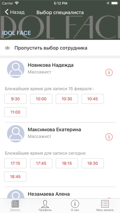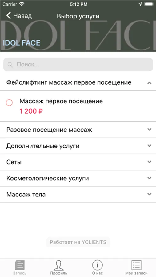 -Приложение федеральной сети салонов массажа лица Idol Face.