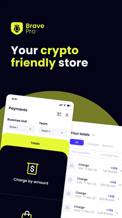 BravePro brings crypto payments to your store. Receive crypto from your customers’ smartphone straight into your business account, with instant conversion in USDC. Bring more value to your clients as you enjoy the benefits of blockchain. BravePro takes your business to the next level.