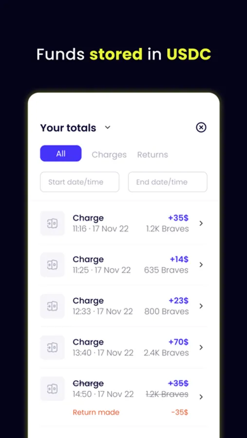 With BravePro, the value of your funds will be safe: all payments received are stored in stable coins such as USDC. Every dollar you get, will always be worth a dollar.