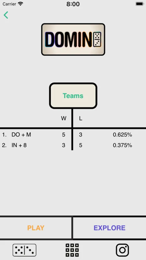 Besides keeping track of scores, our app also allows you to edit team names, add players, and access previously stored teams. To top it all off, Domin8 keeps track of the standings (wins & losses) for the teams and so much more.