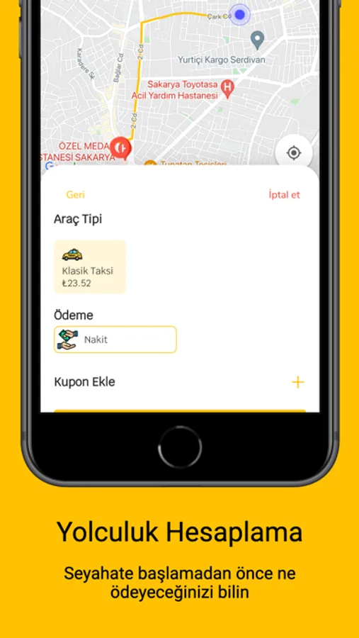 Taksi 54 ile ne ödeyeceğiniz önceden bilirsiniz. Taksi çağırmadan önce, “Yolculuk Hesaplama” sistemi otomatik olarak çalışacaktır. tahmini ücret görebilirsiniz.