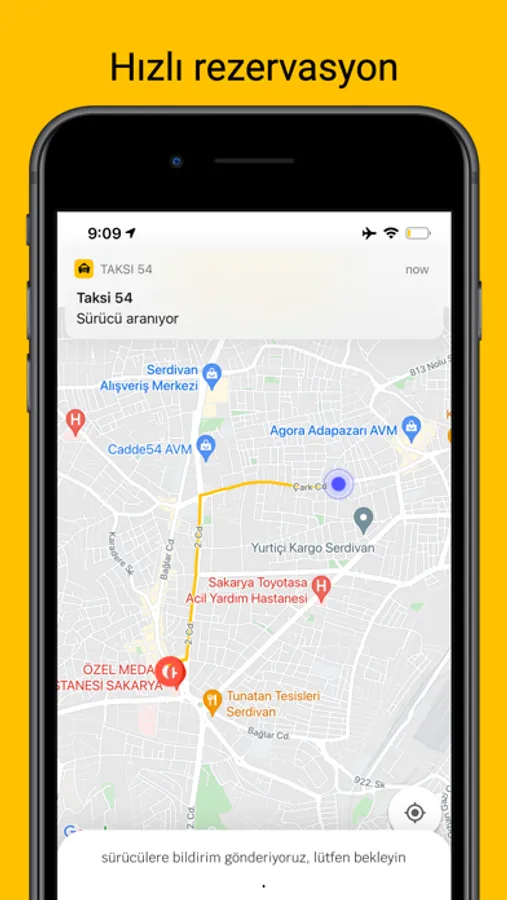 Taksi 54, size en yakın taksiyi tek dokunuş ile yönlendirir; yolda, yağmurda taksi aramak ve beklemek zorunda kalmazsınız.