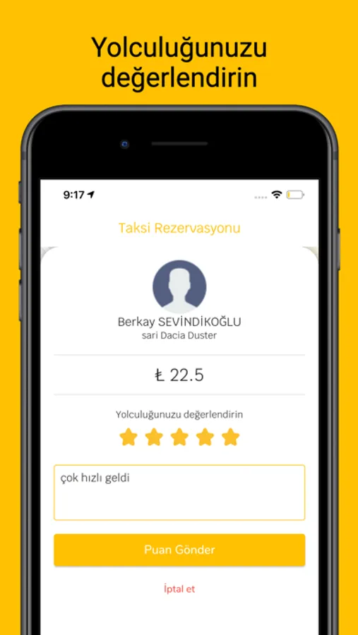 Yolculuk sonunda şoförünüzü ve yolculuğunuzu değerlendirebilirsiniz ve deneyiminiz hakkında yorum girebilirsiniz.