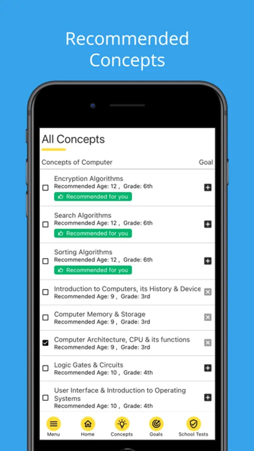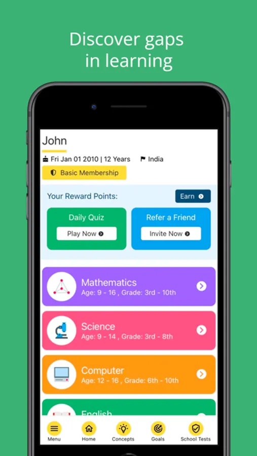 Acadcheck helps school students to discover the gaps in learning. Acadcheck is an app where students can track their goals in learning various concepts of Mathematics, General Science, Physics, Chemistry, Biology, Computer & English Language subjects. Acadcheck provides personalized computer adaptive assessments that can adapt to individual student performance. It helps students analyze their understanding on the chosen concept with the level of understanding on prerequisite concepts.