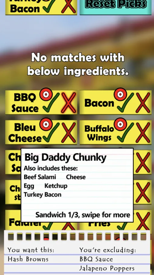 The Fat Sandwich Finder is an unofficial app that helps you filter out different Fat Sandwiches based on what you do and don't want. All you need to do is tap on what ingredients you want, and you'll be shown the full selection of sandwiches that match your search.