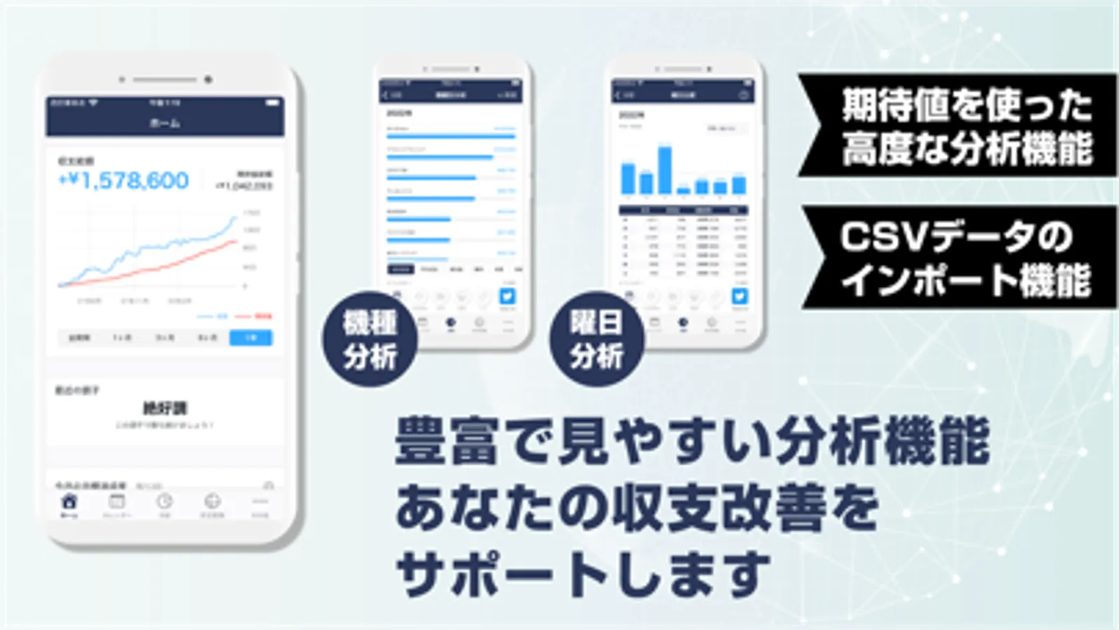 豊富な分析で、あなたの収支改善を約束します。