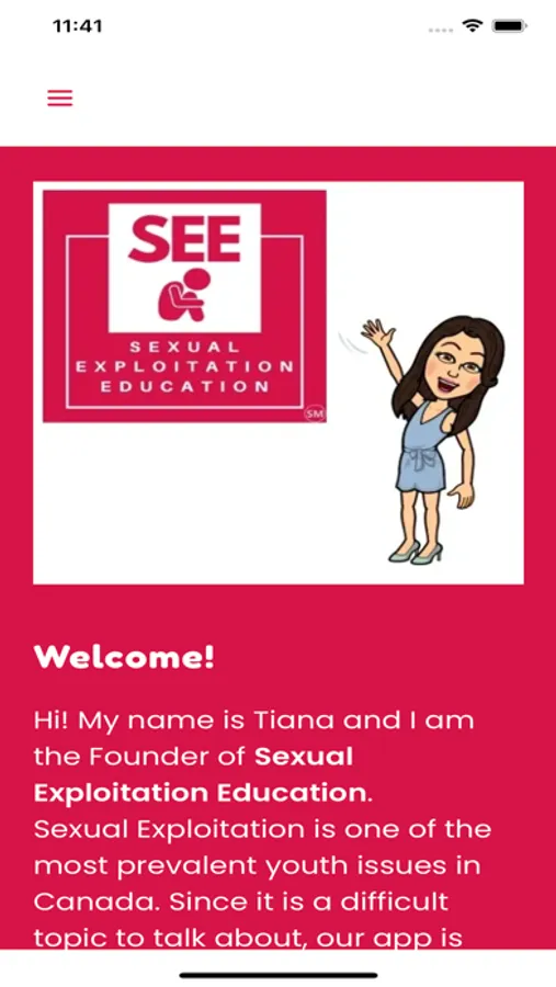 Developed by Sexual Exploitation Education, the SEE App guides youth in reading quizzes on the different types of sexual exploitation, learning through engaging content, goal setting to prevent vulnerability factors, and directly accessing Canadian resources.