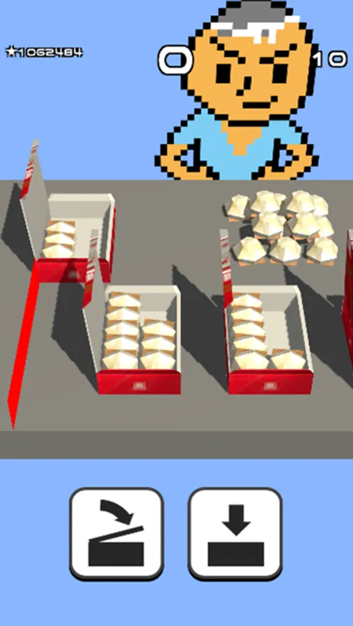次々流れてくる箱に、合計10個つめたら箱をしめよう!