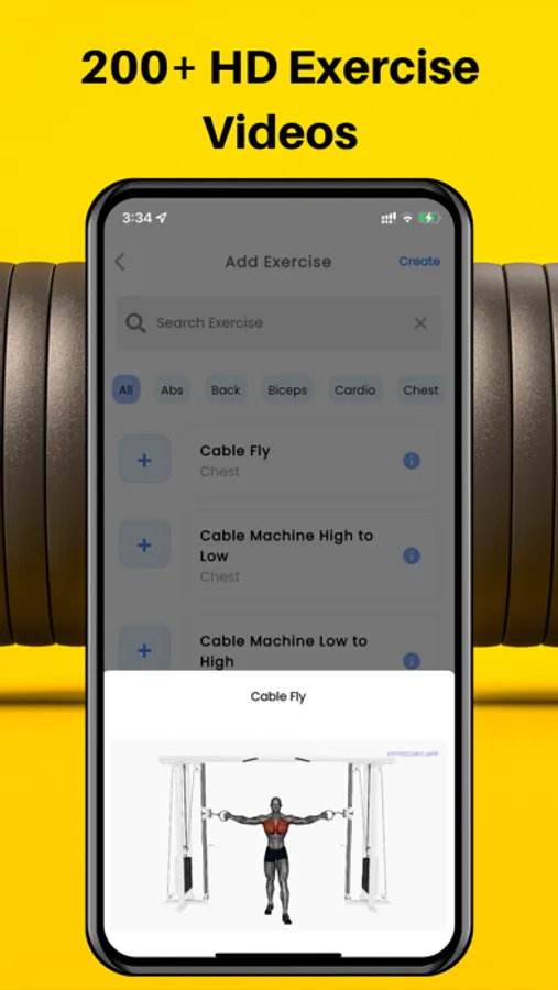 - 200+ built-in exercises videos against categories such as Chest, Back, Legs, Shoulders etc.