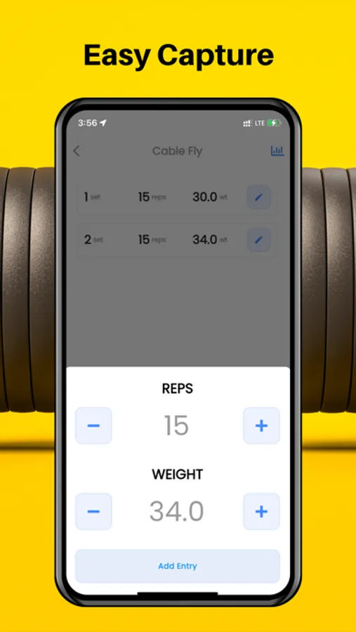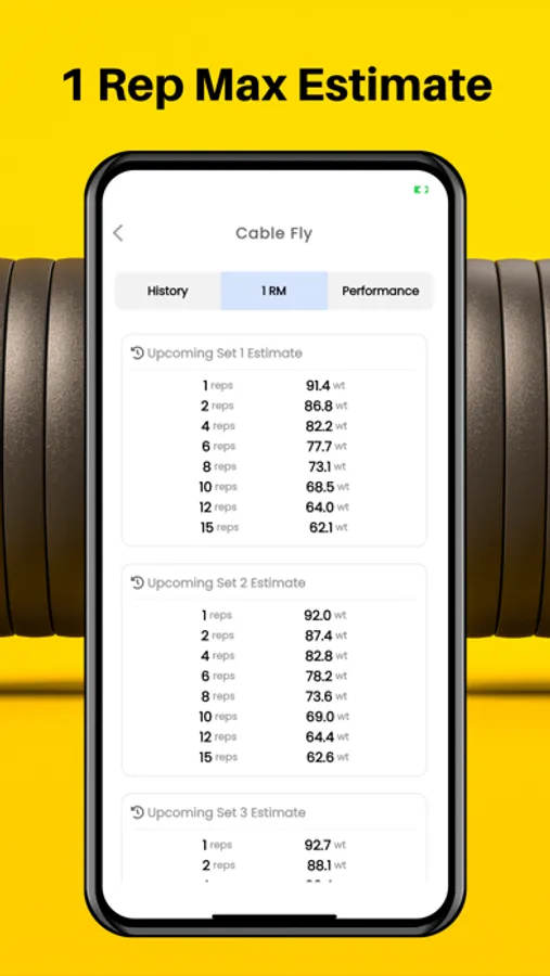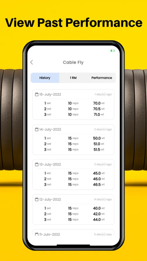 - Add an exercise to the workout log and record sets of weight, reps, distance, calories or time.
