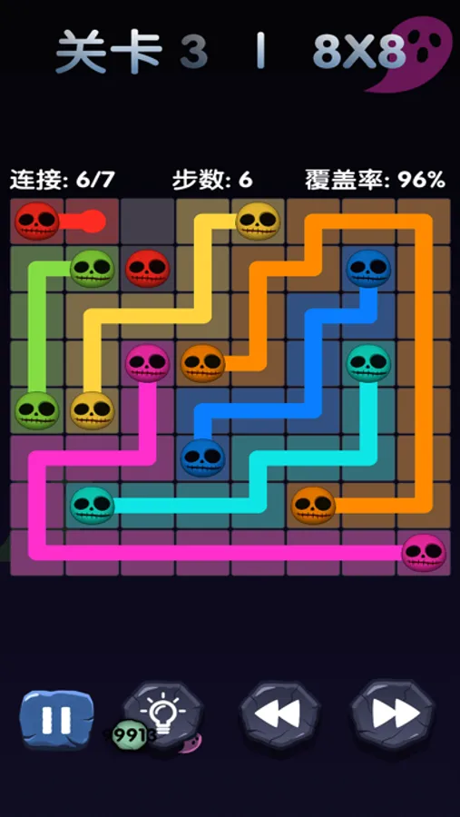 由不同的彩色线条组成的迷宫,需要匹配对应颜色的线条进行彩色连接,才能完成一次成功的链接。将所有颜色进行配对,并覆盖整个区域,即可顺利过关。如果发生交叉或重叠,彩色线条将会折断。从简单初级,到高难挑战,应有尽有。 如何玩此款游戏,完全由你做主。 快来试玩彩色链接!