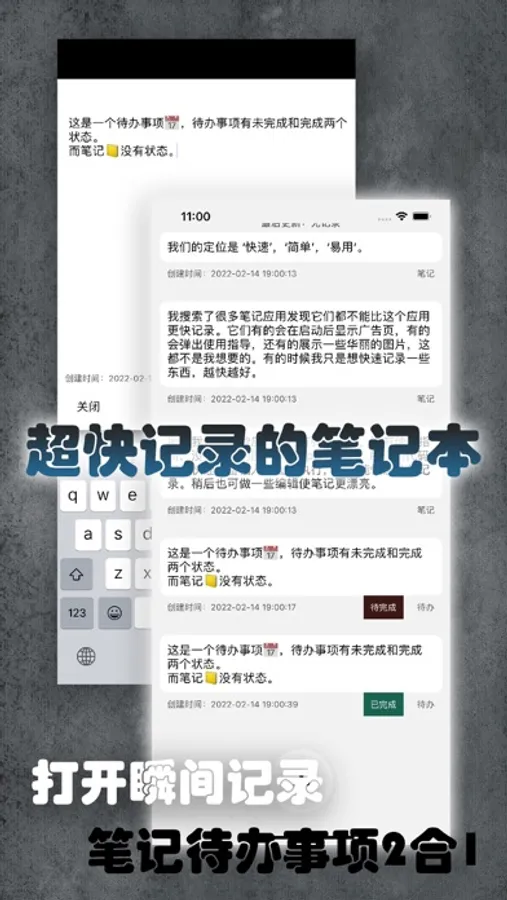 所以我做了这款应用。没有弹窗广告,没有使用指南,没有华丽的图片。在app启动后,所有的代码都为快速准备输入界面而执行,尽可能快速让你记录。稍后也可做一些编辑使笔记更漂亮。