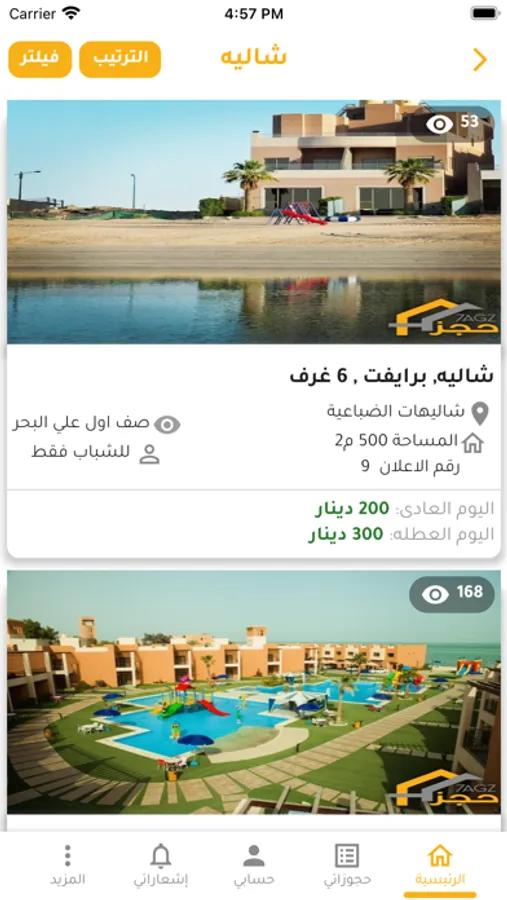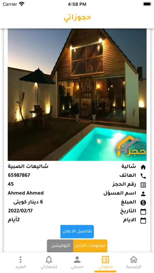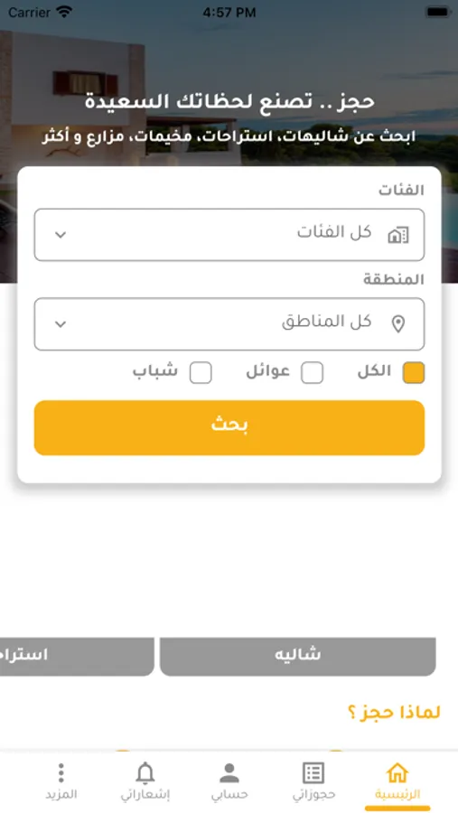 تطبيق حجز هو التطبيق الاشمل لحجز شاليهات، استراحات، مخيمات، مزارع في عدة مناطق مختلفة في الكويت