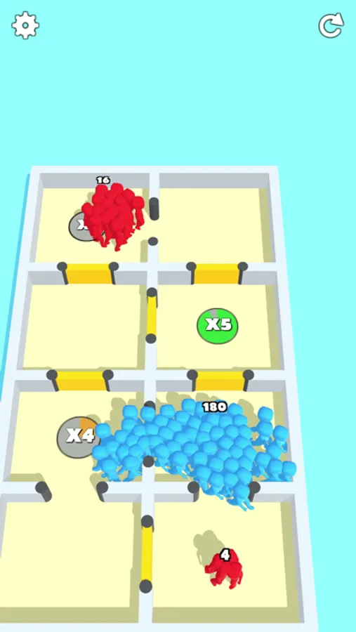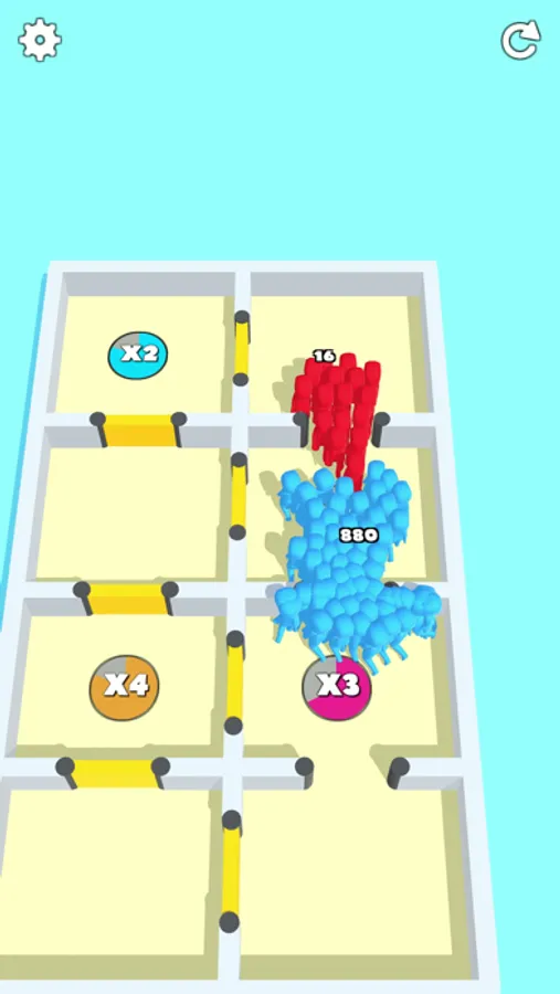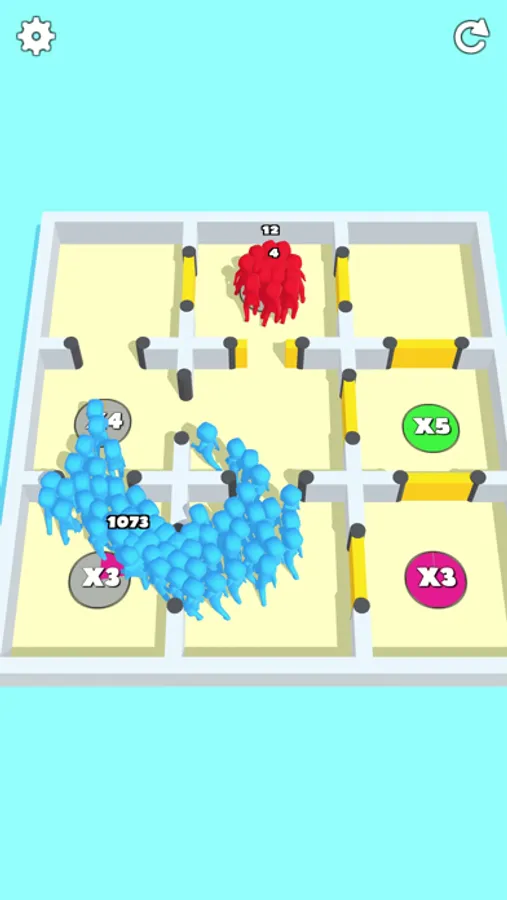 Keep on collecting the multipliers and grow into large crowds to easily kill all enemies.