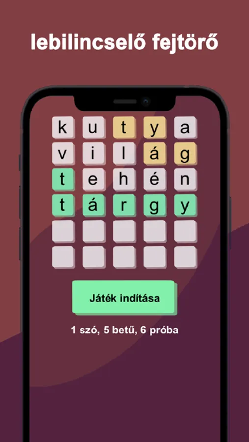 Találd ki az elrejtett szót legfeljebb hat próbálkozásból és tartsd frissen az agyad. A megoldásban a csempék színei segítenek: ha sárgára változik egy betű alatt a csempe, akkor az adott betű szerepel a szóban, de másik helyen, ha zöldre változik egy csempe, akkor az adott betű ugyanazon a helyen szerepel, mint az elrejtett szóban. Helyes megfejtés esetén a sor minden csempéje zöldre változik.