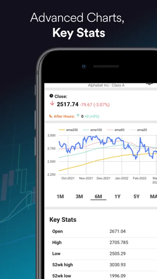 2) Set a stock alert and get notified right away. Set a price alert or a price change alert for both intraday and after hours and get notified by email or push notification immediately.
