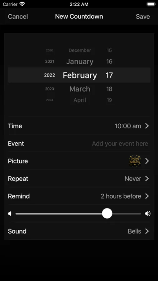 - Never miss important events and special occasions. Count down to your vacation, anniversary, graduation and more