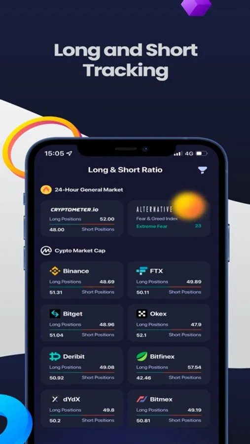 This feature allows you to get long and short position information for Binance, Bitfinex,Bitmex and other popular exchanges.