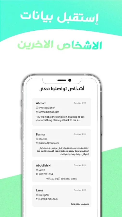 Our products are linked to our application via NFC technology, and through the application, you can share all your data, communication sites, and links, whether personally or as a business owner
