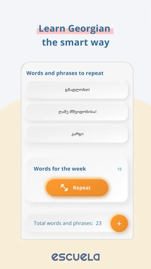 Play with words – pronounce & translate them. In the Escuela app, you will also find voice exercises.