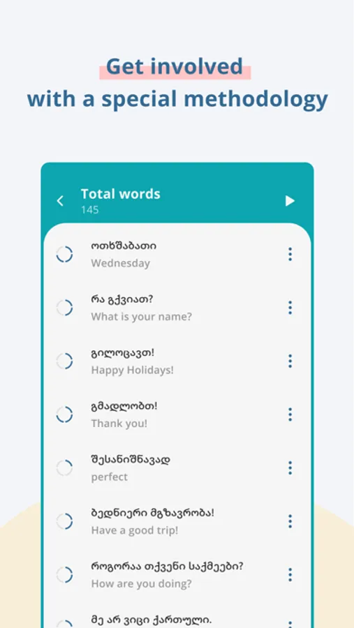 All the words you've learned will stay in your memory. Repeat them according to the given algorithm: