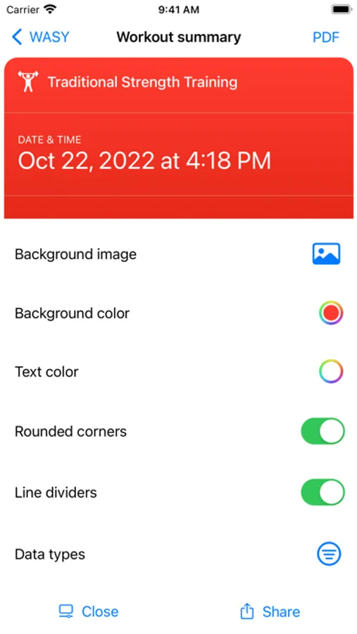 Stop sharing screenshots of your workouts summaries and use WASY to easily create images and PDF files from your summaries that you can share wherever you want.