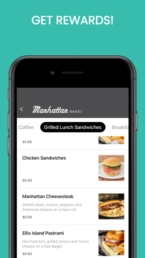 Track your Stars and redeem Rewards for a free food or drink of your choosing. Receive custom offers as a Manhattan Bagel Rewards™ member.