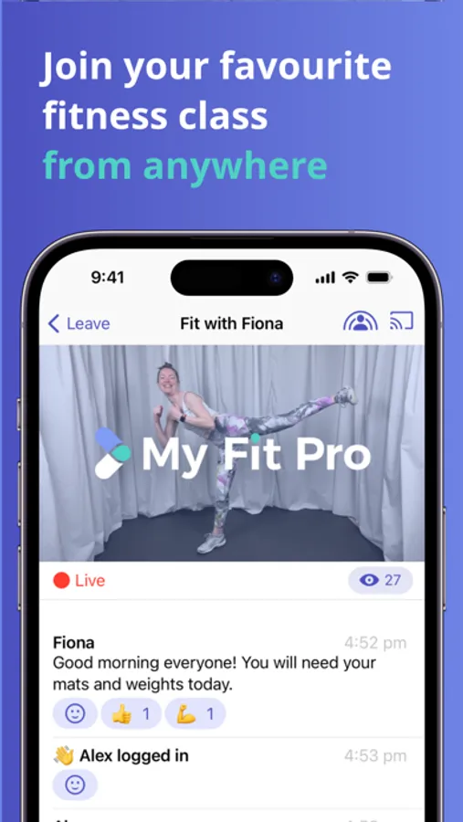 My Fit Pro brings fitness class attendees a simpler and easier to use class experience. Enjoy live streamed fitness classes with video in stunning quality, with built-in AirPlay support, making it easier than ever to work out with your favourite instructor, on your big screen, from the comfort of home.