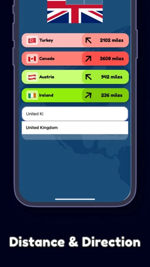 When you make your first country guess on Earth, the game tells you how close was your guess is in distance and shows the direction in the compass to make your new guess.