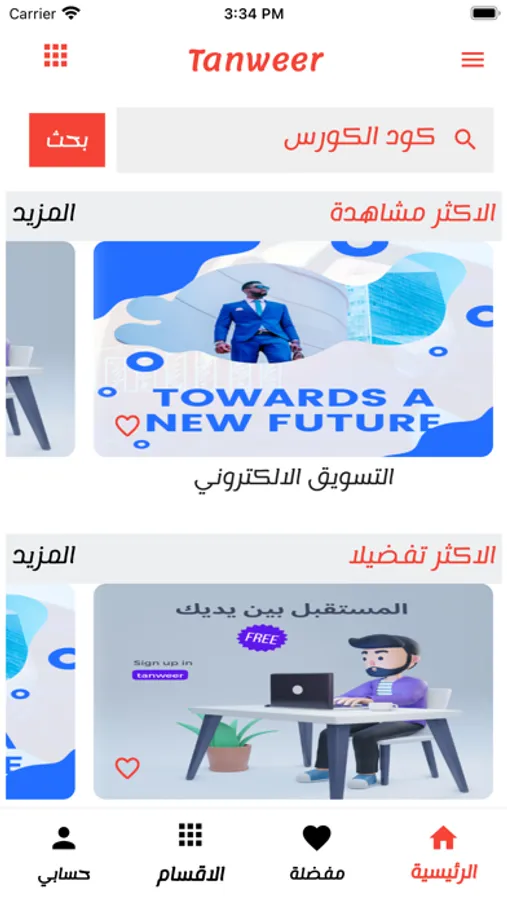 يمكنك التسجيل واختيار المواد التعليمية التي تفضلها في قائمة المفضلة الخاصة بك ليسهل الوصول اليها