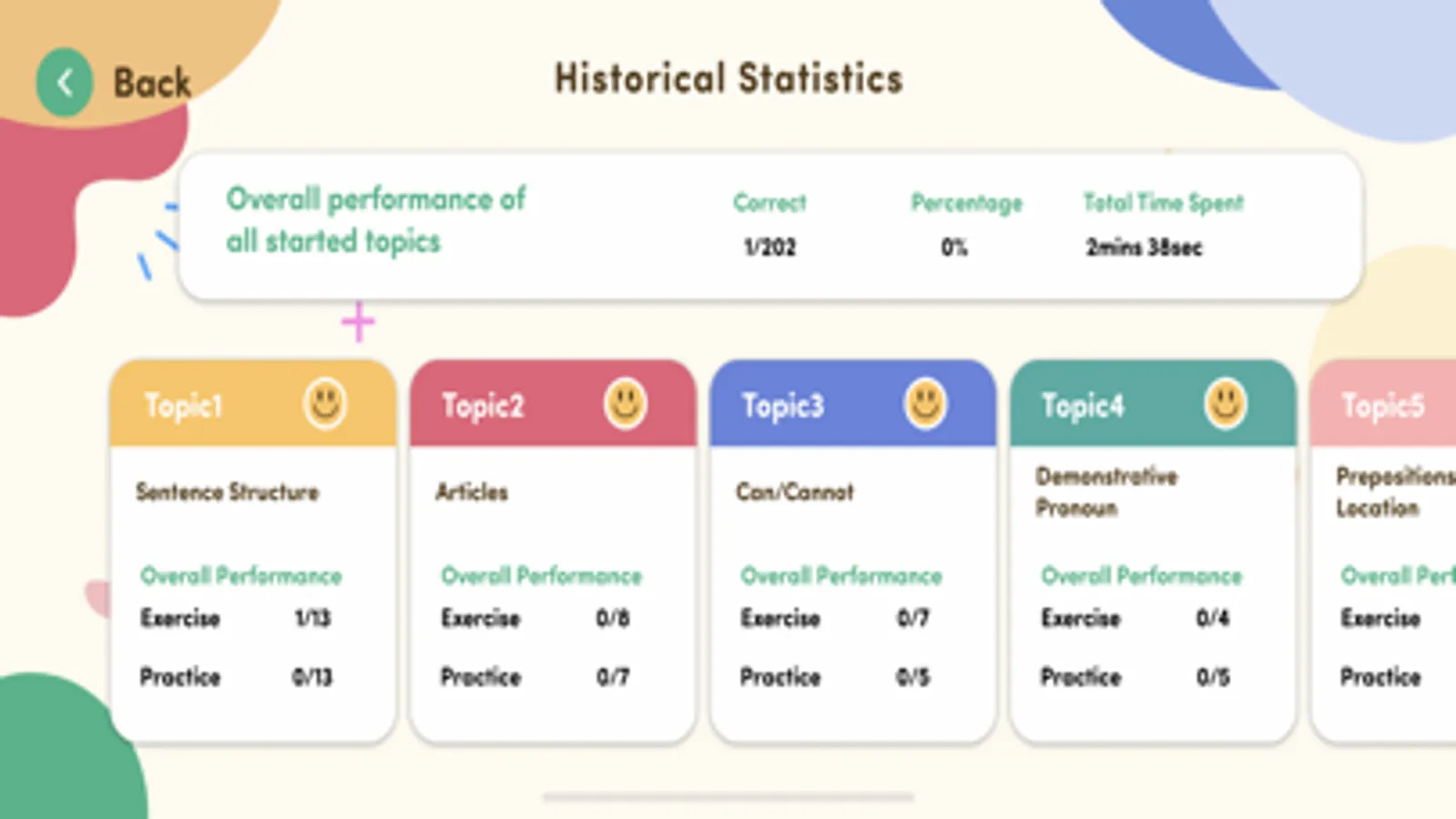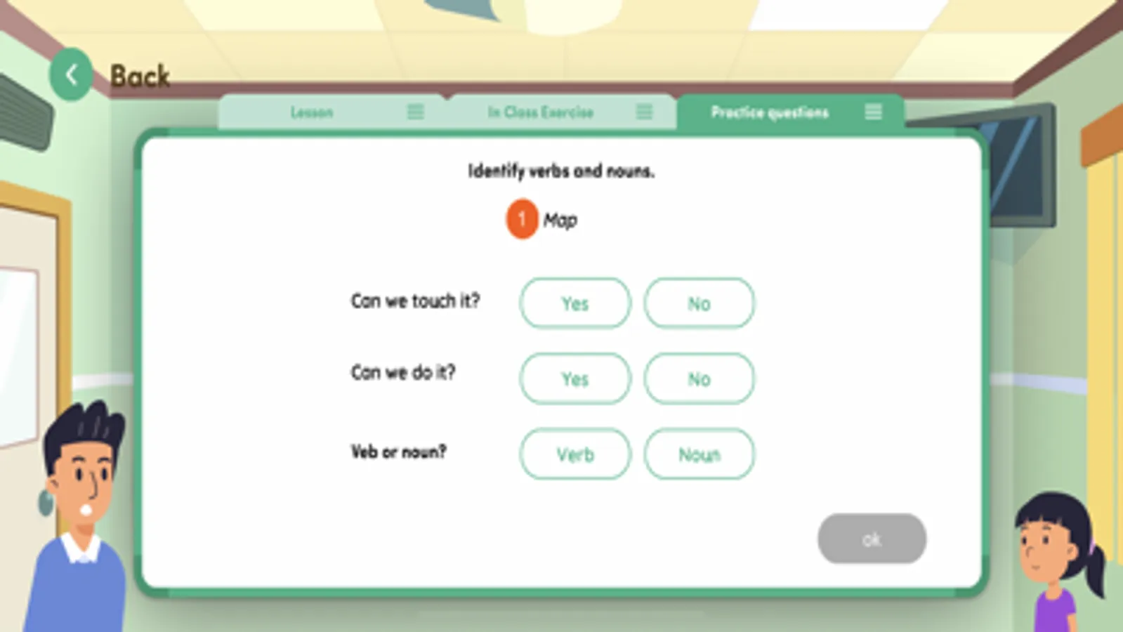 In Bisyntax Builder, you will learn sentence structure, tenses, prepositions, and other basic grammar with game-like lessons. You can also test your knowledge on these topics with hundreds of practice questions.