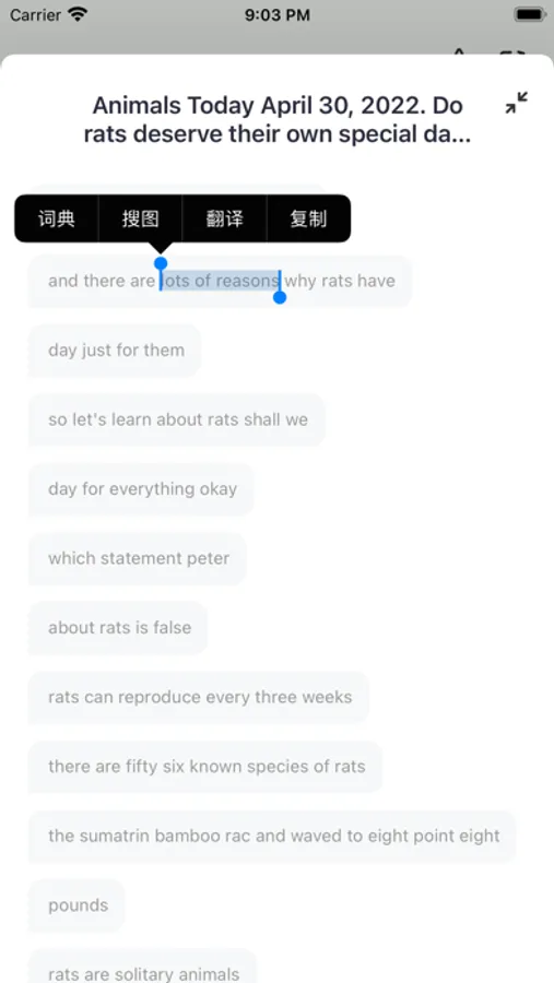 利用 AI 技术自动生成字幕,切分英文音频,使得用户可以选择自己感兴趣的内容,根据自己的掌握情况进行泛听、跟读练习,磨耳朵、磨嘴皮,营造一个准母语环境。