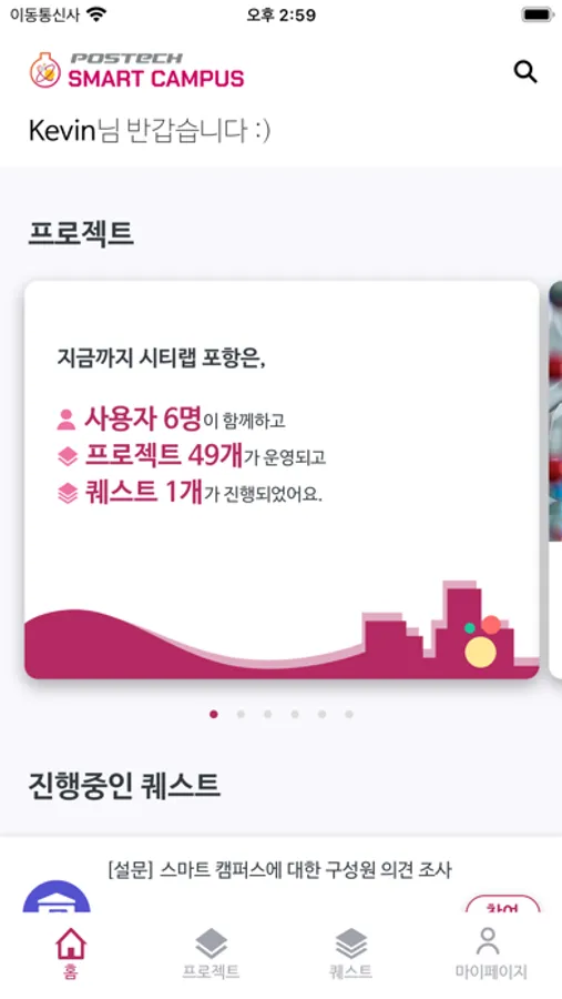 포스텍 스마트캠퍼스 서비스를 문제 발굴에서 해결까지 전 과정에 교내 구성원의 직접적인 참여를 통해 포스텍의 스마트화를 추진하기 위하여 제작된 앱입니다.
