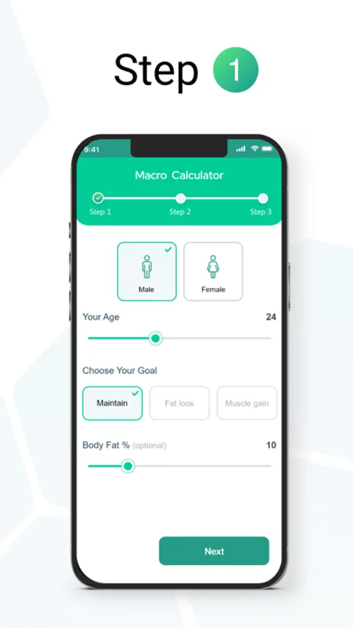 Here you can determine the percentage of macronutrients needed by your body, and it calculates this percentage according to your height and weight.