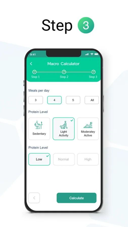 Here, you can get the number of calories, carbs, fats, and the percentage of protein needed by your body.