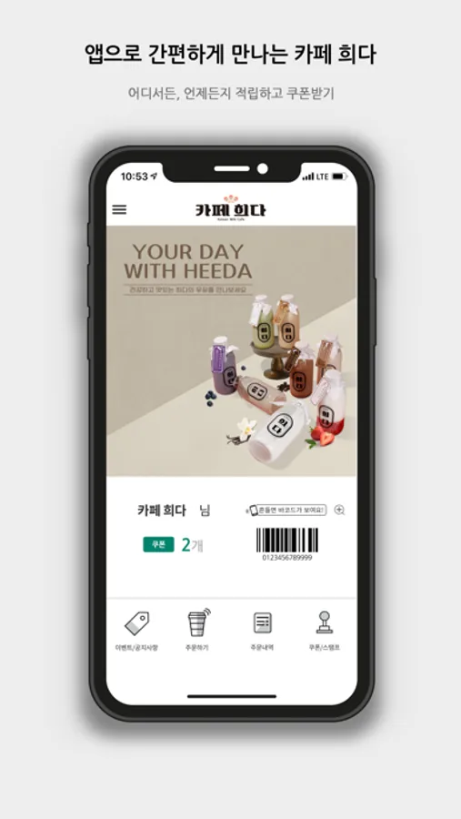 카페희다 주문앱으로서 회원 가입된 카페희다 매장에 주문할 수 있습니다.