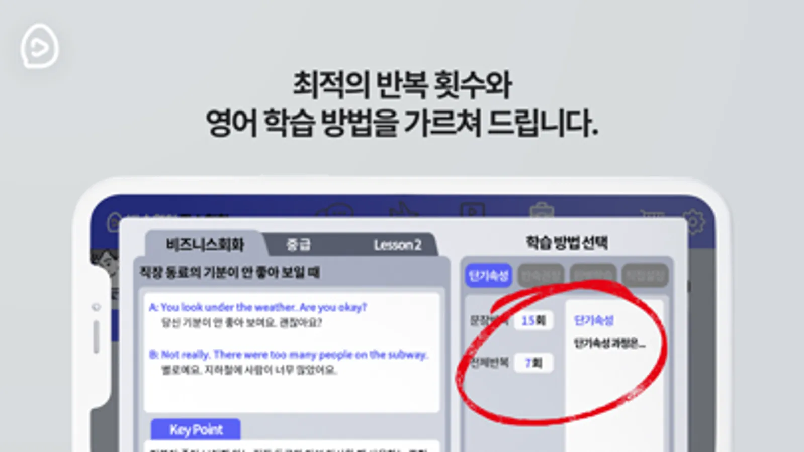 대한민국 영어 반복 학습 앱의 최고봉인 오잉글리시의 ‘반복’ 학습의 정수를 그대로 담았습니다.