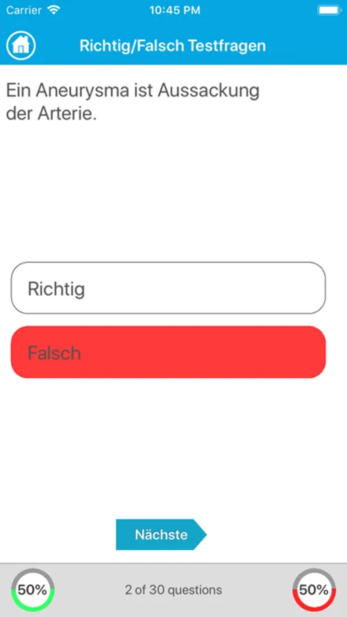 - Es gibt 2 Quiz-Modus. Multiple-Choice Quiz und Richtig/Falsch Quiz.