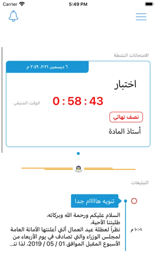 حيـث انـه يقـوم بجمـع كل المعلومـات الدراسـية المتعلقـة بطلبـة الجامعـة في الكـورس الـدراسي وتفاصيـل امتحاناتهـم، علمـا بـان جميـع المعلومـات المذكـورة اعـلاه سـتكون متاحـة لـكل مـن الطلبـة واوليـاء امورهـم اضافــة الى انهــا متاحــة لــكل مــن الــكادر الإداري والتدريــسي عــى حــد ســواء.