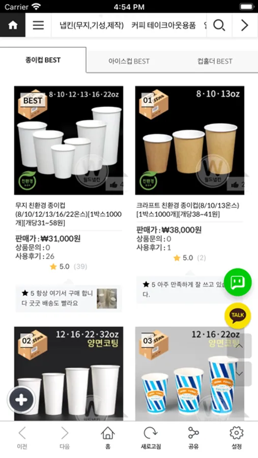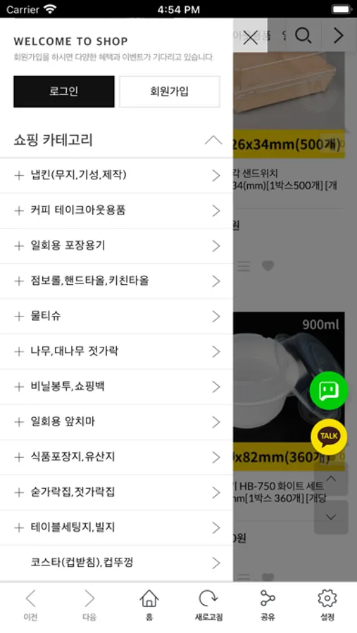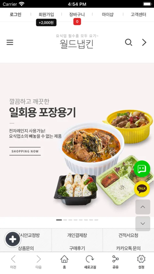 대한민국 요식업 필수용품 전문 쇼핑몰 월드냅킨의 APP으로 편리하게