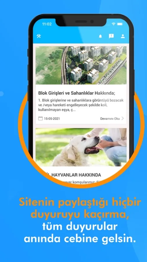 Site içerisinde veya konutlarında oluşan her türlü sorunu, tek tıkla site yönetimine, teknik desteğe ya da idari personele bildirebilirsin.
