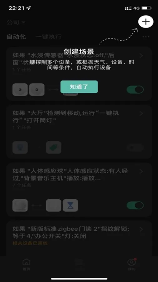 设置空调的温度和运行模式,切换智能窗帘,监控空调并自动开启空气净化器。
