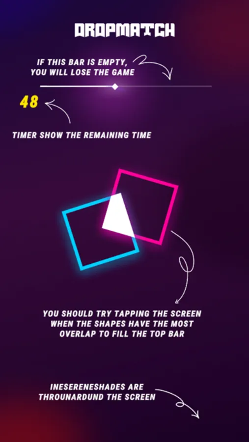 Exciting, fast, accurate. A game in which you have to focus on getting the biggest bite from overlapping geometry by tapping when they overlap the most
