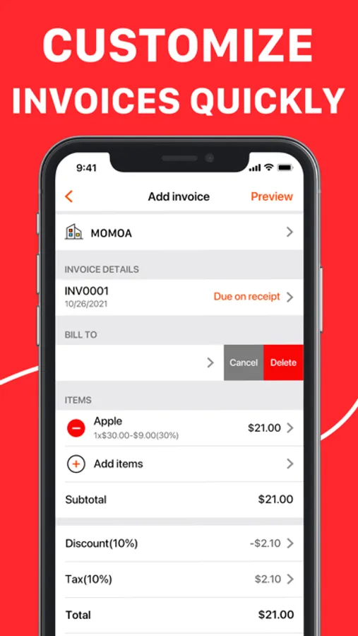 You'll be able to create invoices and estimates with-in few seconds. This business app allows you to create unlimited customers, products and services. You can choose from highly professional templates to generate invoice PDF and send it to your customer.