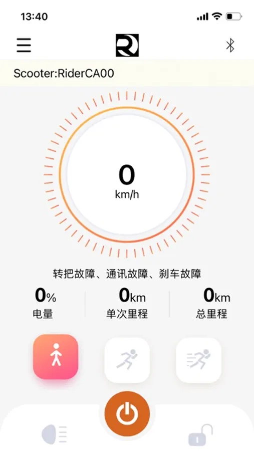 Remaining battery power and speed adjustment, security alerts, mileage statistics.