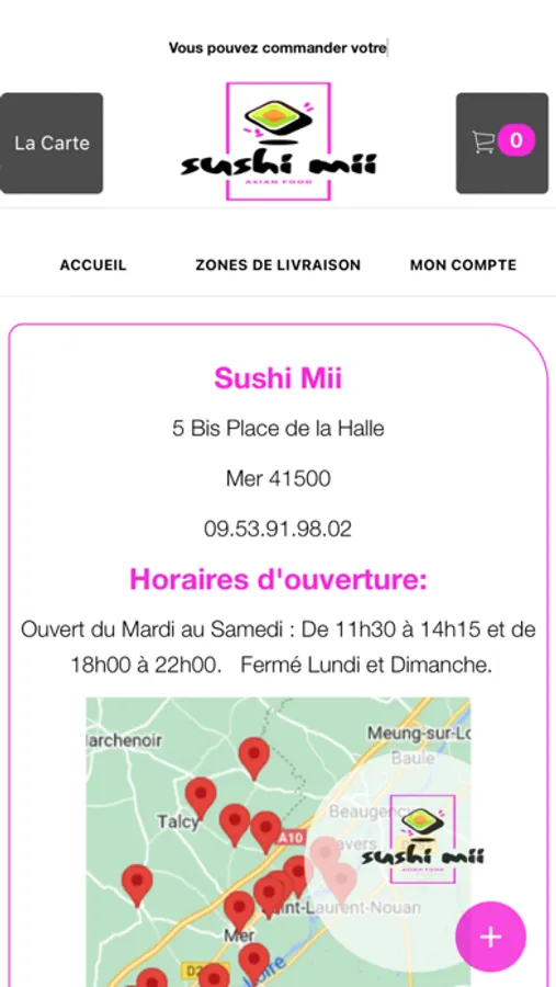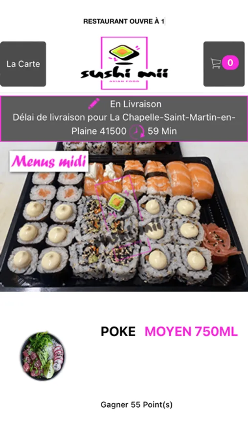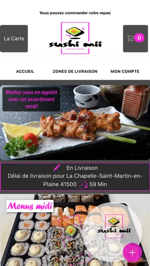 L'application Sushi Mii vous permet de commander en ligne ou par téléphone via votre application. Vous pouvez consulter notre carte et choisir vos produits.