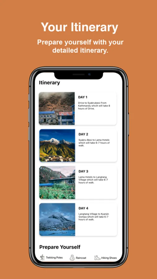 Find your favorite trekking route and plan your journey ahead with a complete Itinerary and all needed important informative information.