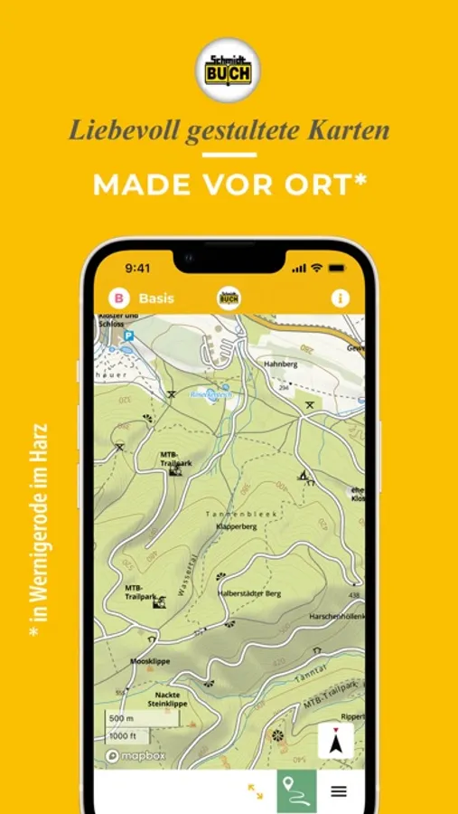 Trotz digitaler Technik und einer dynamischen Darstellung sind die Karten in der App in unserem eigenen Stil gehalten. So wird die hybride Navigation mit Karte und Smartphone für Sie zum bequemen Wechselspiel: Tauschen Sie das Medium – nicht den Inhalt!